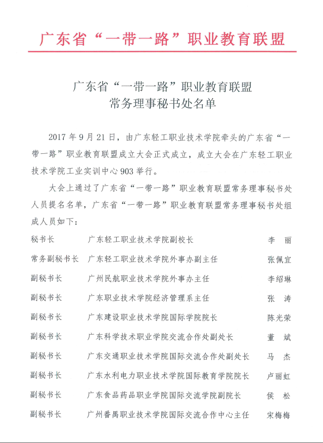 广东省“一带一路”职业教育联盟常务理事秘书处单位
