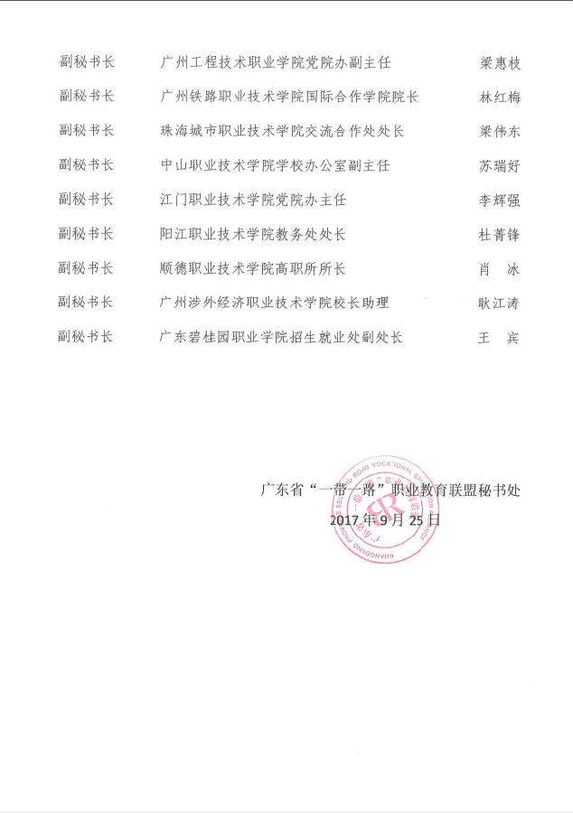 广东省“一带一路”职业教育联盟常务理事单位理事长、副理事长推荐人员名单