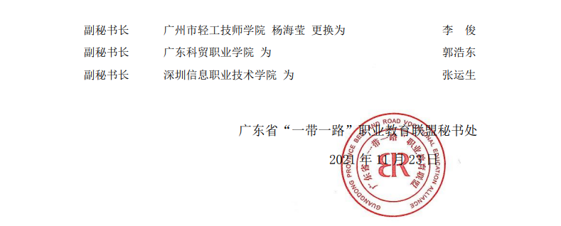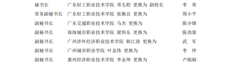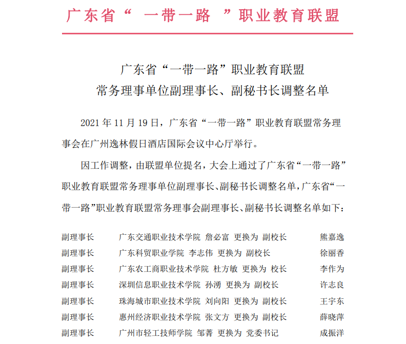 广东省“一带一路”职业教育联盟常务理事单位副理事长、副秘书长调整名单