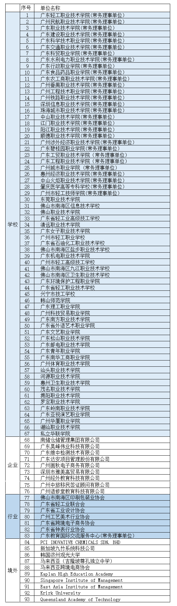 广东省“一带一路”职业教育联盟2021年成员名单
